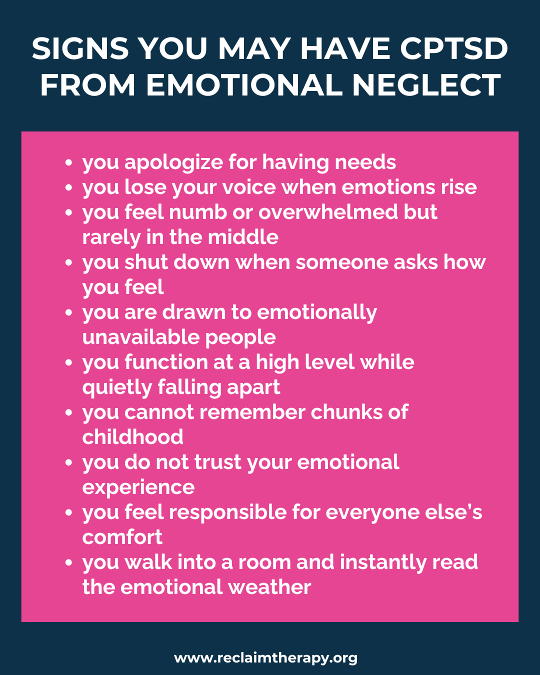Here are the hallmarks of CPTSD that emotional neglect often creates.