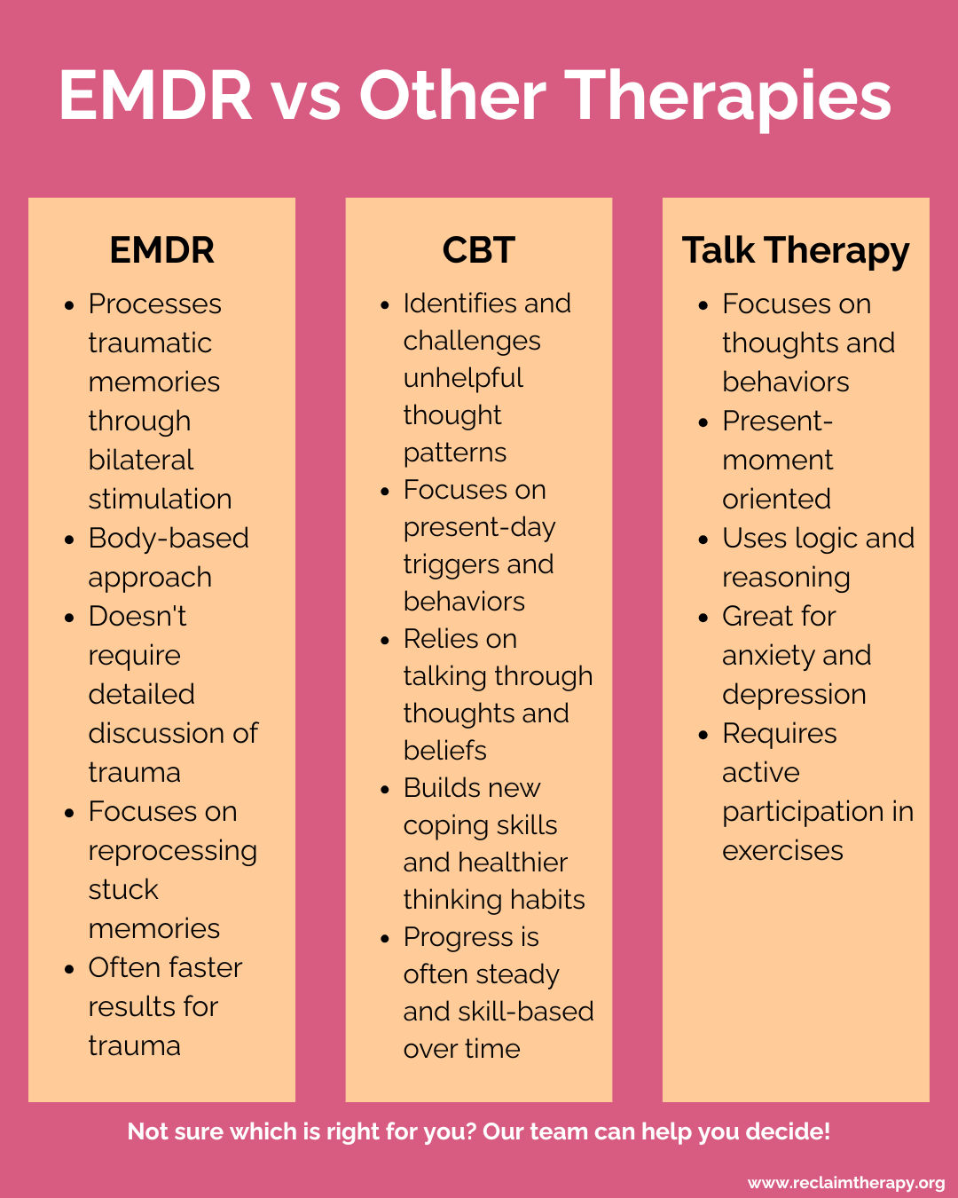 If you’re still on the fence, we want you to know that the fact that you’re asking “is EMDR right for me?” suggests some part of you knows it’s time to try something different.