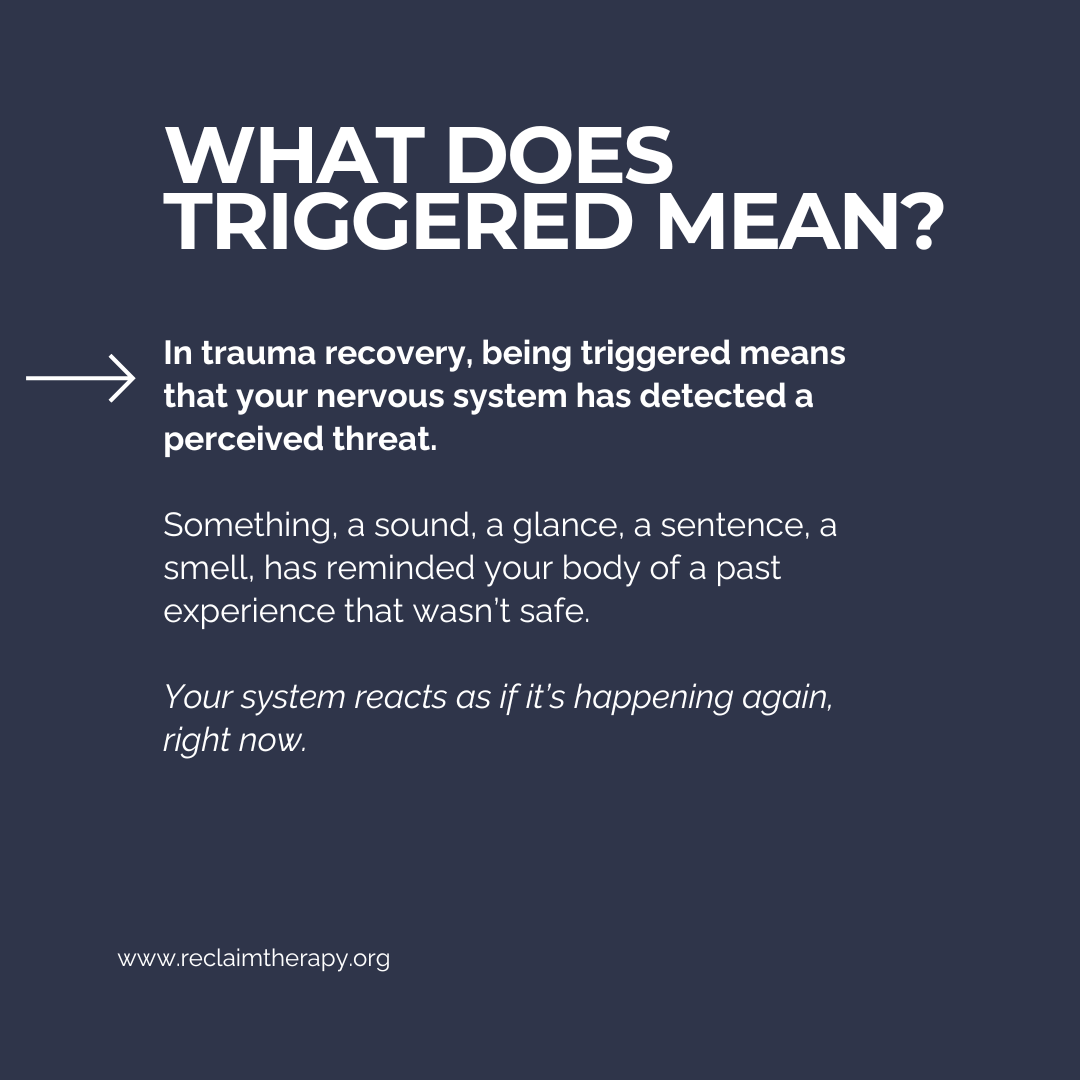 In trauma recovery, being triggered means that your nervous system has detected a perceived threat. Something, a sound, a glance, a sentence, a smell, has reminded your body of a past experience that wasn’t safe. This is often described as feeling triggered, where intense emotional and physical reactions arise in response to reminders of trauma.